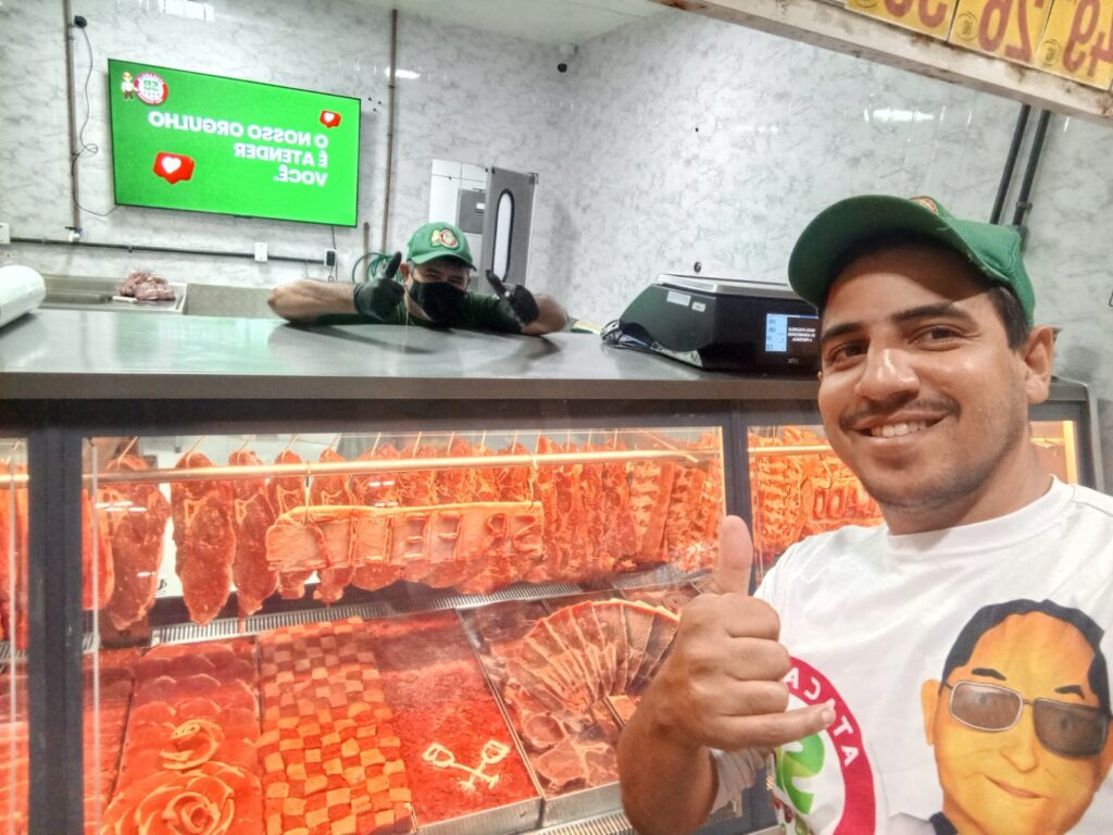 Thaome Silva da Costa, 31, é o profissional especialista em preparar as decorações das carnes para a vitrine de frigorífico. Com 21 anos na estrada e muitas decorações ao longo da carreira, decorar os balcões dos frigoríficos para ele é como a confeiteira decorar um bolo de festa. Na trajetória dele acrescente-se as passagens por grandes empresas de marcas renovadas no Brasil como Masterboi, Supermercado Ex, e cursos técnicos de capacitação na JBS e Masterboi.