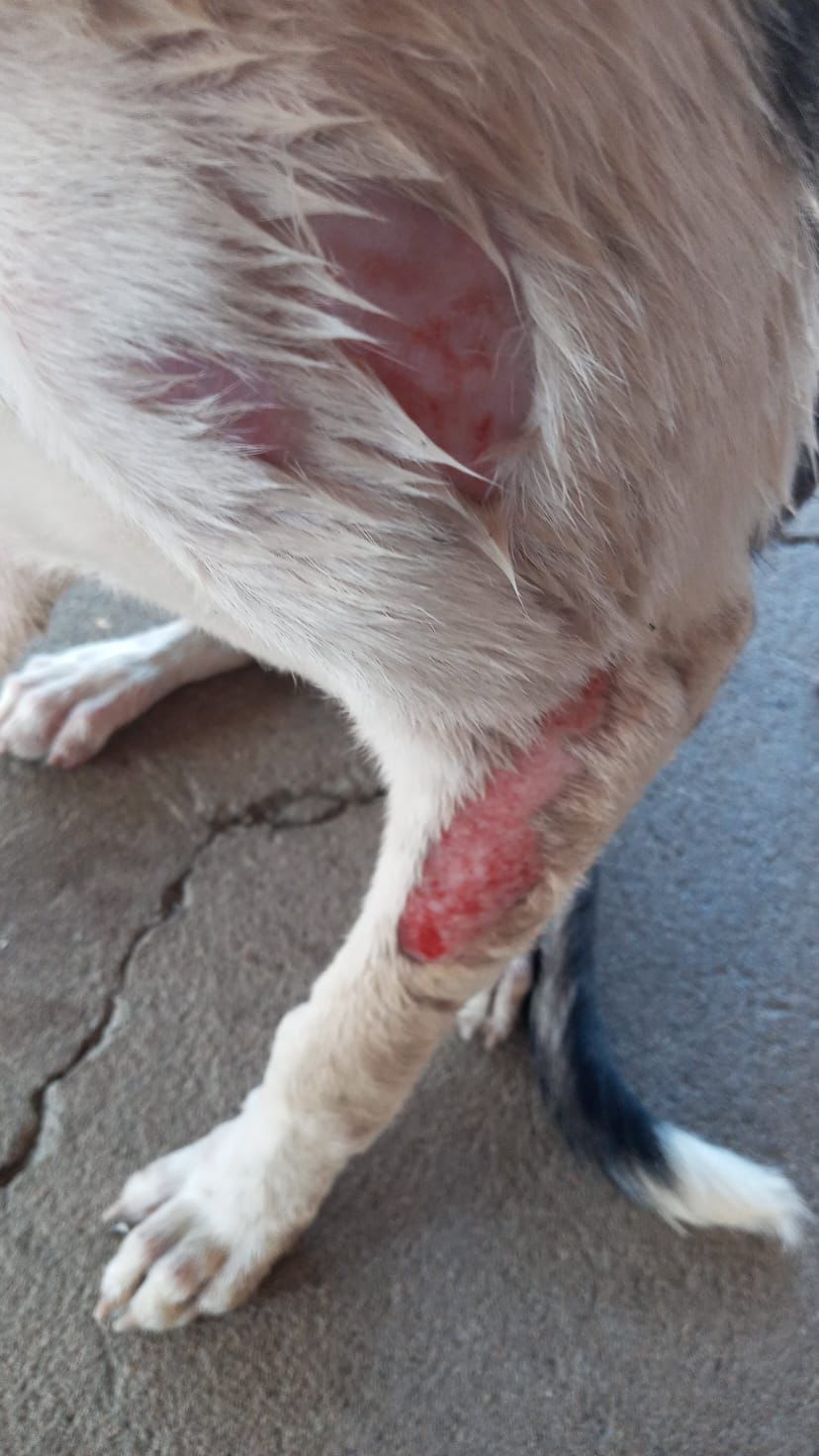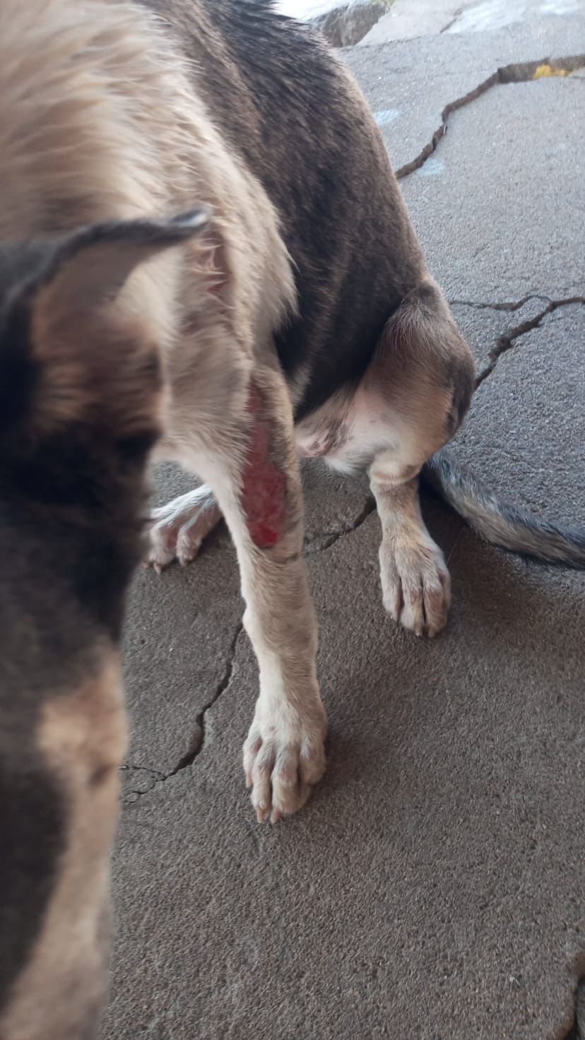 A cadela de rua agredida com água quente por um homem, que não teve a identidade revelada, foi resgatada pela ONG Patinhas Jucaenses e encaminhada para o Instituto Lilica no município de Nova Olinda.
