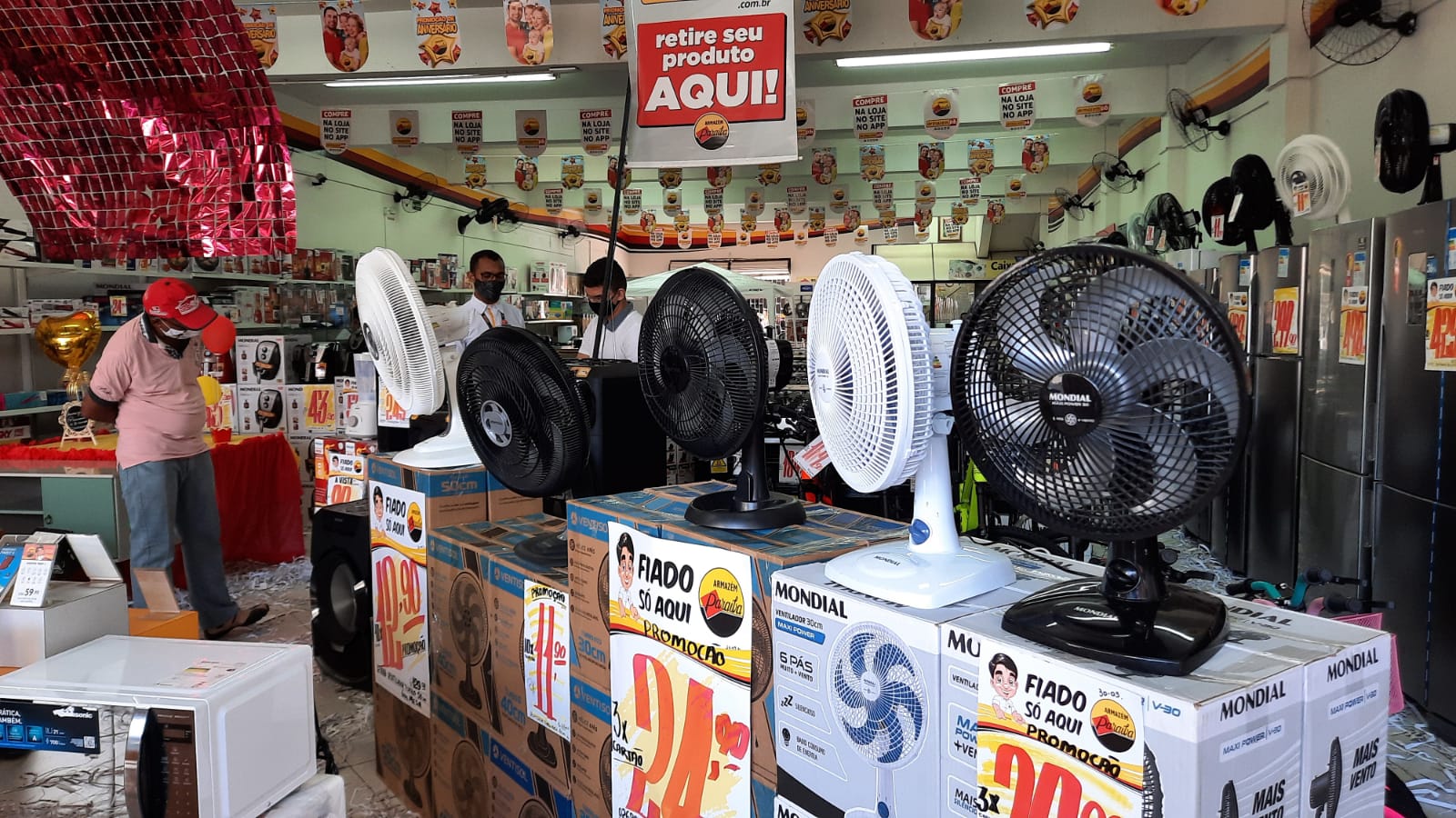 Situação confirmada pelo vendedor João Uchoa. Segundo ele, as vendas de ventiladores comparadas com o mesmo período do ano passado, entre os meses agosto e setembro, aumentaram em torno de 50%. Aqui a gente tá vendendo bem o ventilador de 40 centímetros. Dependendo da marca pode chegar até R$ 249,90. A gente parcela em até dez vezes sem juros”.