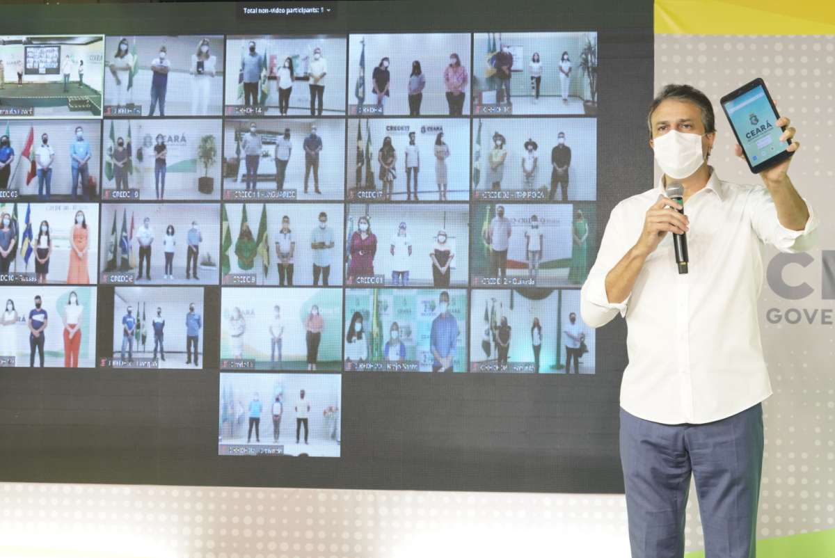 Na área de educação, o governador fez entrega simbólica aos estudantes da 1ª série do Ensino Médio estadual através das redes sociais, ao lado da secretária da Educação, Eliana Estrela, a secretária executiva de Gestão da Rede Escolar, Oderlânia Leite, e a estudante Gerlania Camilo do Nascimento, da Escola de Ensino Médio em Tempo Integral Senador Osires Pontes. A solenidade virtual foi acompanhada pela comunidade escolar, superintendências das Escolas Estaduais de Fortaleza (Sefor) e Coordenadorias Regionais de Desenvolvimento da Educação (Credes). “Todos os alunos do 1° ano do Ensino Médio receberão tablets. Isso vai virar uma política permanente. O aluno que sai do 9° ano do ensino fundamental e entra no 1° do ensino médio já recebe o seu tablet, o seu chip, e vai passar os três anos com esse equipamento para auxiliar no aprendizado dele”, afirmou Camilo Santana, que aproveitou para se solidarizar aos familiares das 20 mil vítimas da Covid-19 no Ceará.