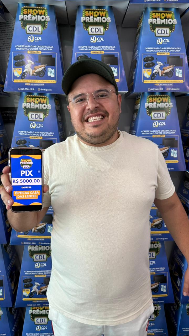 Nesta semana a CDL – Câmara de Dirigentes Lojistas de Iguatu fez a entrega dos prêmios aos ganhadores da campanha Show de Prêmios que ainda não haviam comparecido. Faltavam apenas dois ganhadores: o representante da empresa Casa das Lentes, loja contemplada no sorteio do PIX no valor de R$ 5 mil, e a ganhadora de um aparelho celular Iphone, pela empresa Atacarejo SB, do sorteio realizado na sexta-feira, 23, em frente à sede da entidade na Rua Dr. João Pessoa.