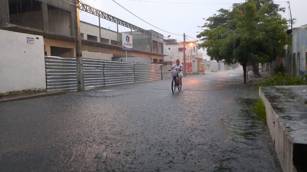 Não só quem tentou passar de bicicleta, mas também motoristas não se arriscaram a colocar o carro no rio formado no cruzamento entre as ruas Gustavo Correia Lima e Coronel Virgílio Correia. Além desse ponto, outros locais também no centro ficaram alagados, trechos das ruas Deocleciano Bezerra e professor João Coelho e também da avenida Agenor Araújo, dificultando o trânsito de veículos e a passagem de pedestres. Na avenida Dr. Carlos Roberto Costa, (Perimetral) quem precisou ir para o trabalho buscou abrigo debaixo de marquises. Outras pessoas com mais presa encararam a chuva. “É o jeito. Tem que enfrentar a chuva logo cedo da manhã. Já tô atrasada para o serviço, ainda tenho que comprar o pão. Seria bom que dessem um jeito nisso. Toda chuva é assim”, cobrou a empregada doméstica Maria Alves.