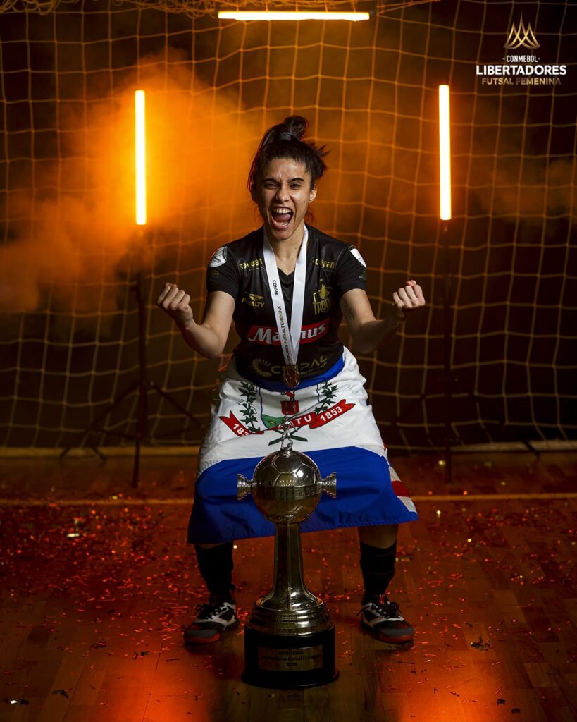 Mesmo vivendo há anos nos principais palcos do futsal brasileiro – onde já conquistou Liga Nacional, Copa do Brasil (três vezes), Taça Brasil (três vezes), Supercopa, Paulista (duas vezes) e ainda soma convocações para a Seleção Brasileira – ela nunca esqueceu de onde veio. “Representar meu povo sempre será uma honra. Levo minhas origens comigo”, disse.