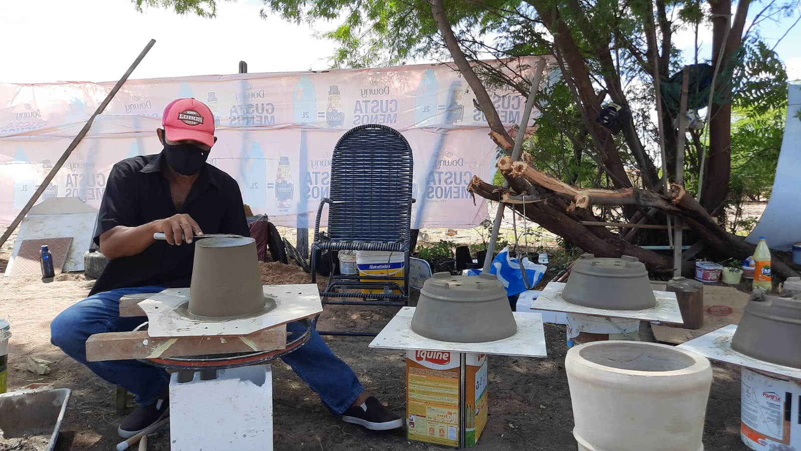 “Meu marido é eletricista, mas ficou desempregado. Ainda trabalha, mas fazendo bico. Ele teve a ideia de fazer jarros de cimento e passou a ganhar dinheiro que vem ajudando no sustento de casa. Todo dia eu estava na porta de duas escolas. Ia vender no Caic na hora do intervalo, saía de lá e vinha para o Municipal. Era um dinheiro que ajudava muito a gente a manter nossa família. As escolas suspenderam as aulas presenciais. Tive que ficar em casa e sem ganho”, disse, afirmando que a família passou a enfrentar dificuldades financeiras.