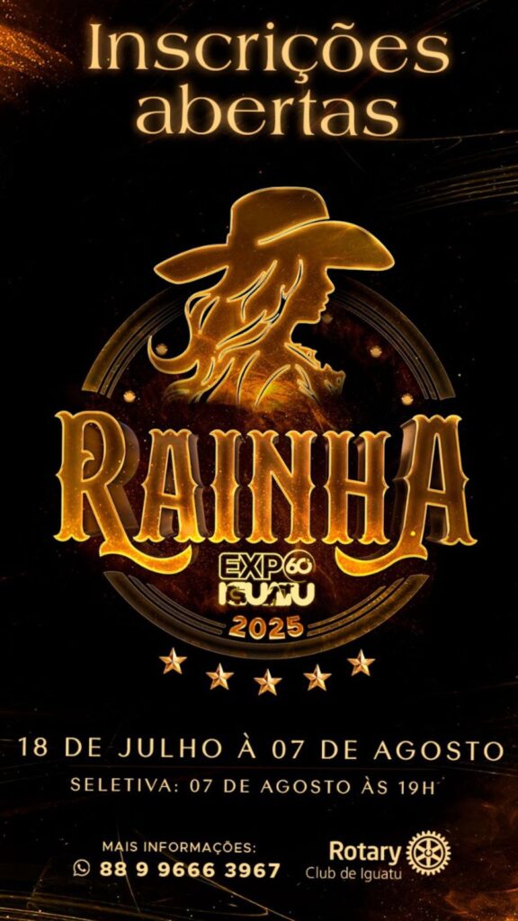 O evento integra a programação da exposição agropecuária, industrial e comercial deste município. “A seletiva acontece no dia 7 de agosto, quando serão escolhidas por um júri seleto as candidatas que concorrerão ao título de Rainha da Expoiguatu. A eleita que conquistar a vaga ocupada pela Hellen Oliveira, Rainha de 2024, vai receber faixa, buquê de flores, além da premiação de R$ 3 mil”, contou Lelé Fantim, produtor do concurso.