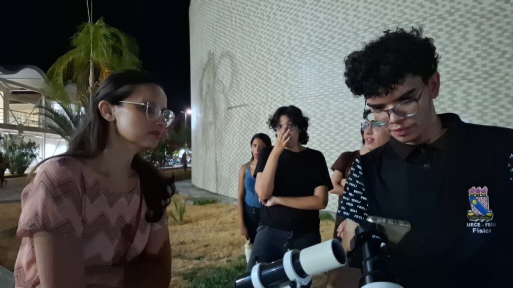 A última superlua de 2025 movimentou o Campus Humberto Teixeira, em Iguatu, na noite desta quinta-feira, 4. A observação integrou ação do Grupo de Estudos em Astronomia Zênite – GEAZ, projeto de extensão do curso de Física da UECE – FECLI voltado à astronomia e à divulgação científica. O grupo busca aproximar escolas, estudantes e comunidades do conhecimento sobre o universo, promovendo atividades práticas, palestras e experiências observacionais.