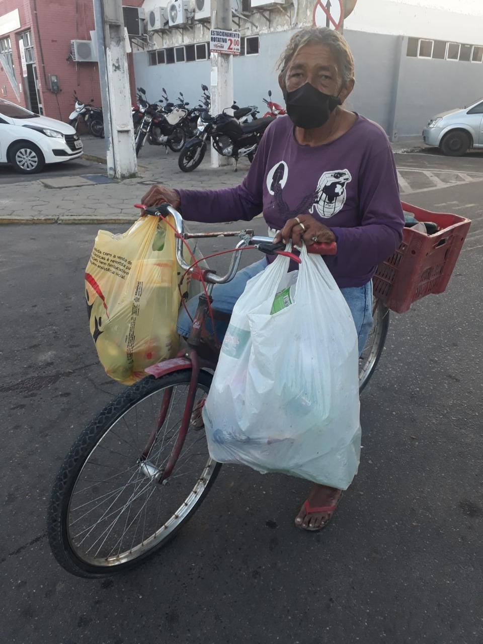 Alzira Gomes Lira, 67, catadora, não sabe quantos quilômetros percorre por dia de bicicleta recolhendo papelão, garrafa pet, metais, plásticos e outros materiais para vender e usar o dinheiro para as despesas de casa. “Tem dia que carrego tanto peso nela que você precisar ver. Graças a Deus, essa bicicleta é meu ganha-pão, sem ela não sei o que seria de mim”, disse.