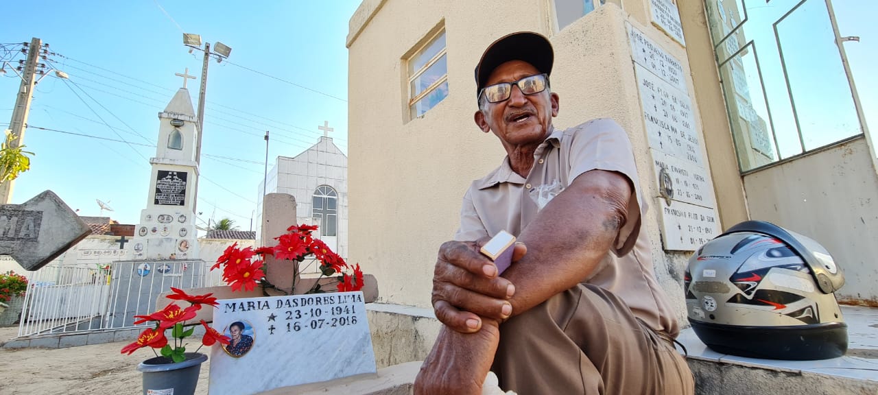 E sentado por ali, contou que naquele local, do cemitério Senhora Sant’Ana, estão enterradas muitas pessoas queridas. “A gente recorda muitas coisas de quando eram vivos. Aqui tem três irmãos, meu, pai, tios, primos, minha esposa, que faleceu em 1995, com 48 anos. Tivemos nove filhos. Passei 6 anos viúvo, depois casei novamente com a atual companheira que já faz 20 anos”, disse o valente agricultor que aos 81 anos de vida mostra vitalidade e disposição.