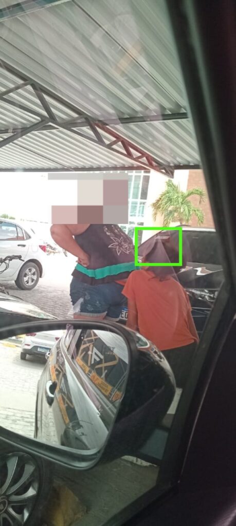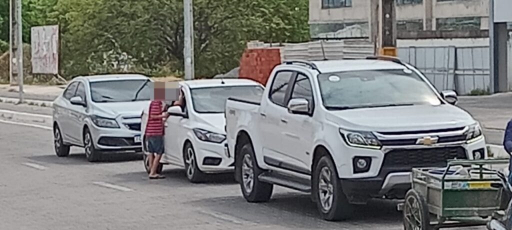 A mulher conhecida por N., mãe dos gêmeos G. e G. de 11 anos, desafia a justiça e mantém as duas crianças nos semáforos pedindo dinheiro. Nesta sexta-feira, 5, ela foi ao limite da tolerância, flagrada no estacionamento de um supermercado no cruzamento da Perimetral com a Av. dos Quixelôs. Enquanto um dos filhos se esquiava entre os carros pedindo dinheiro aos motoristas e passageiros, a mãe estava na sombra aguardando-o para se apoderar do dinheiro arrecadado.