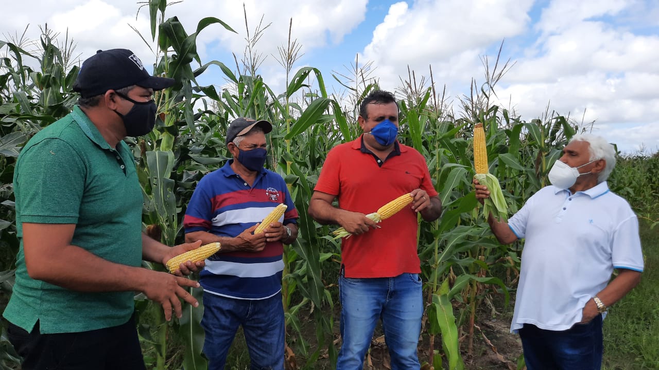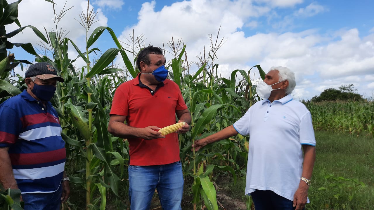 Na roça os pés de milho estão em pleno desenvolvimento. A cultura foi plantada em fevereiro, no Sítio Jenipapeiro, na região da Santa Rosa. A variedade plantada é a BRS 3046, conhecida por saboroso. “É uma cultivar bastante conhecida dos produtores daqui, na produção do milho-verde, apresenta espigas grandes e caroços bem enfileirados. O plantio aqui vai ser visando outra janela: a produção de grãos. Além de ser uma ótima opção para silagem”, explicou Hildernando Barreto, engenheiro agrônomo.