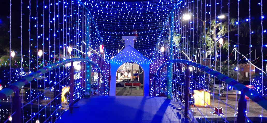 De acordo com os três “cabeças” envolvidos no projeto, o maior foco da decoração foi a Praça da Matriz. “O coração da nossa cidade recebeu uma linda decoração de cores e luzes, com uma árvore feita de material que recuperamos do fogo, assim como as duas imagens do presépio que escapou das chamas. Na Matriz criamos dois portais nas entradas da ponte da fonte, com uma passarela em corredor de luzes, com símbolo de travessia sobre a ponte, como nos liga a outro lugar, de onde saímos de um ano atribulado e ao atravessar buscamos o novo, um novo ano do outro lado da travessia, cheio de esperança, paz e muita saúde para todas as nações”, ressaltou Carlos Lobo.