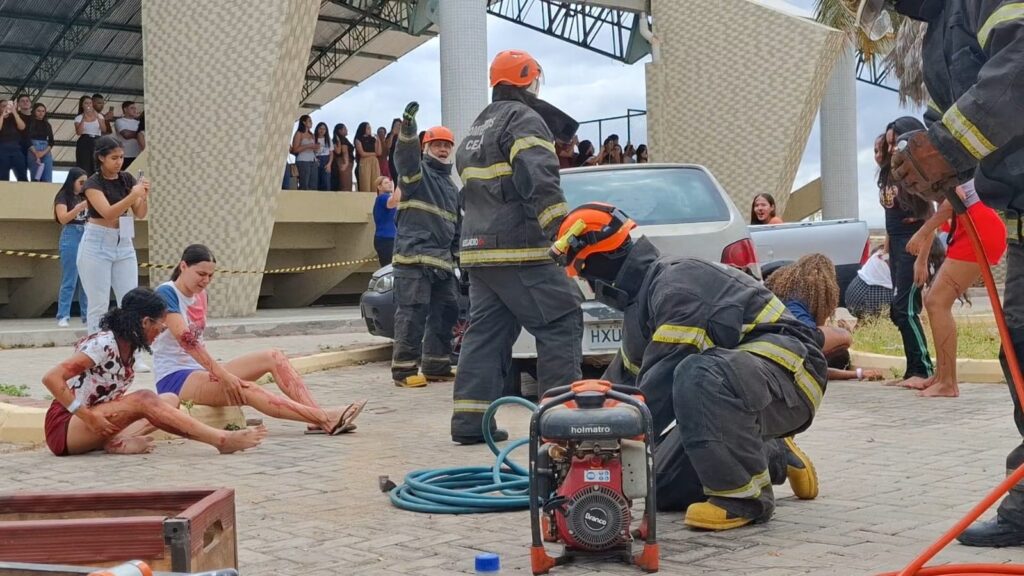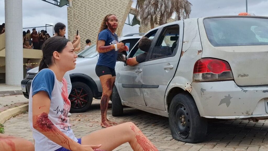 O III Simpósio de Urgência e Emergência da Universidade Regional do Cariri – URCA encerrou suas atividades no campus Humberto Teixeira com uma simulação realística de grande porte que impressionou estudantes e profissionais presentes. O evento, organizado pela Liga Acadêmica de Atendimento Pré-Hospitalar (LAAPH), recriou um cenário de acidente automobilístico com o máximo de fidelidade: sirenes acionadas, sangue artificial e procedimentos completos de resgate.