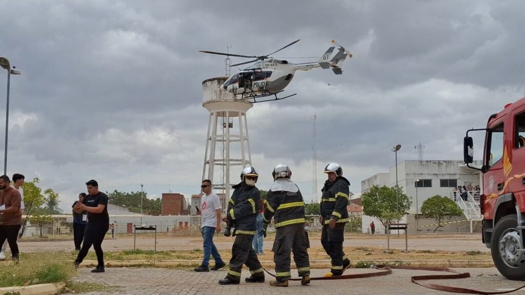 A ação contou com a integração do CIOPAER, do SAMU e do Corpo de Bombeiros Militar. Um dos momentos mais marcantes foi o sobrevoo e pouso do helicóptero do CIOPAER, que realizou a chegada tática para o socorro simulado, conduzindo estudantes ao delírio e atraindo uma multidão curiosa que se aglomerou ao redor da cena para acompanhar cada etapa da operação.
